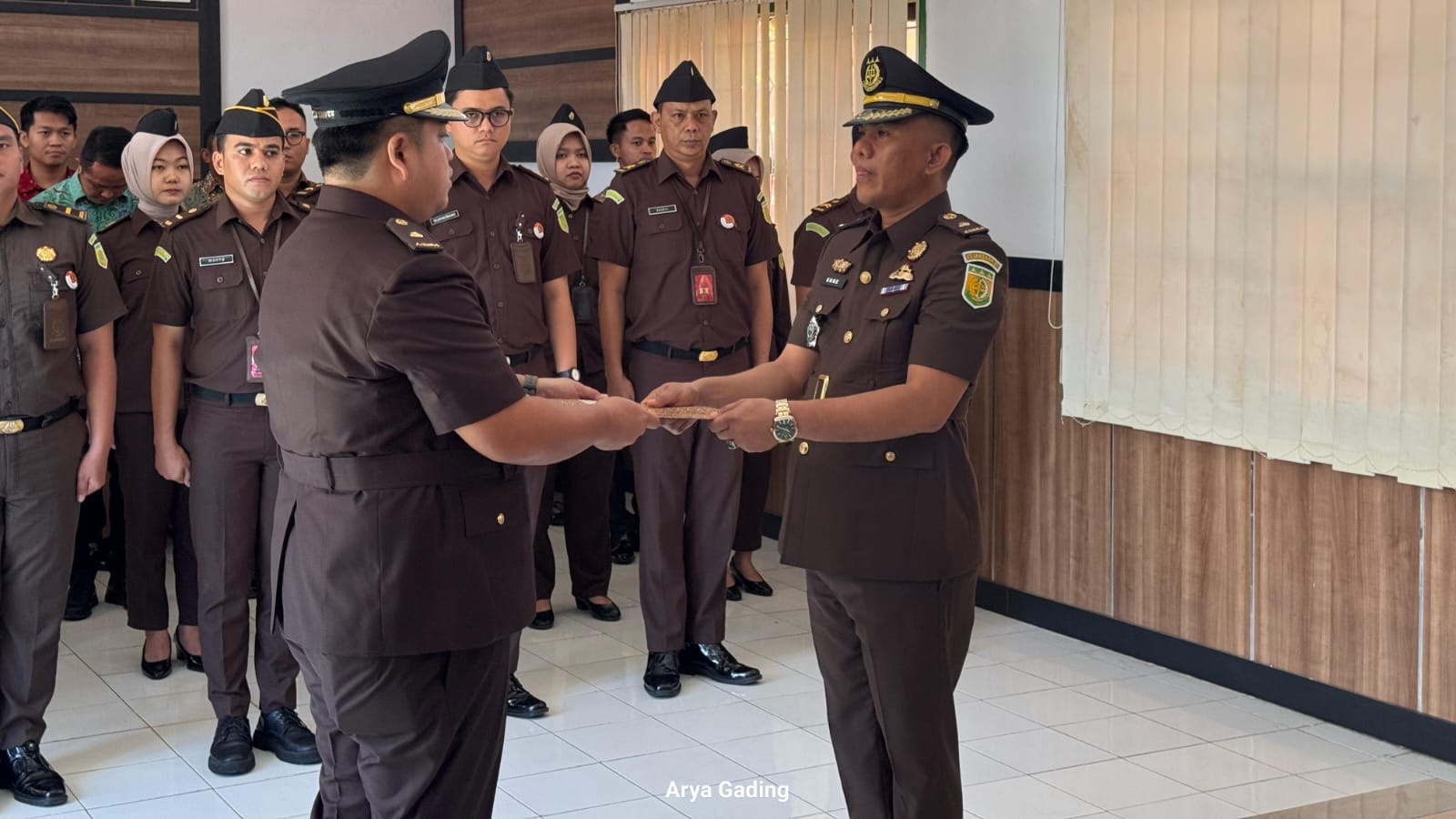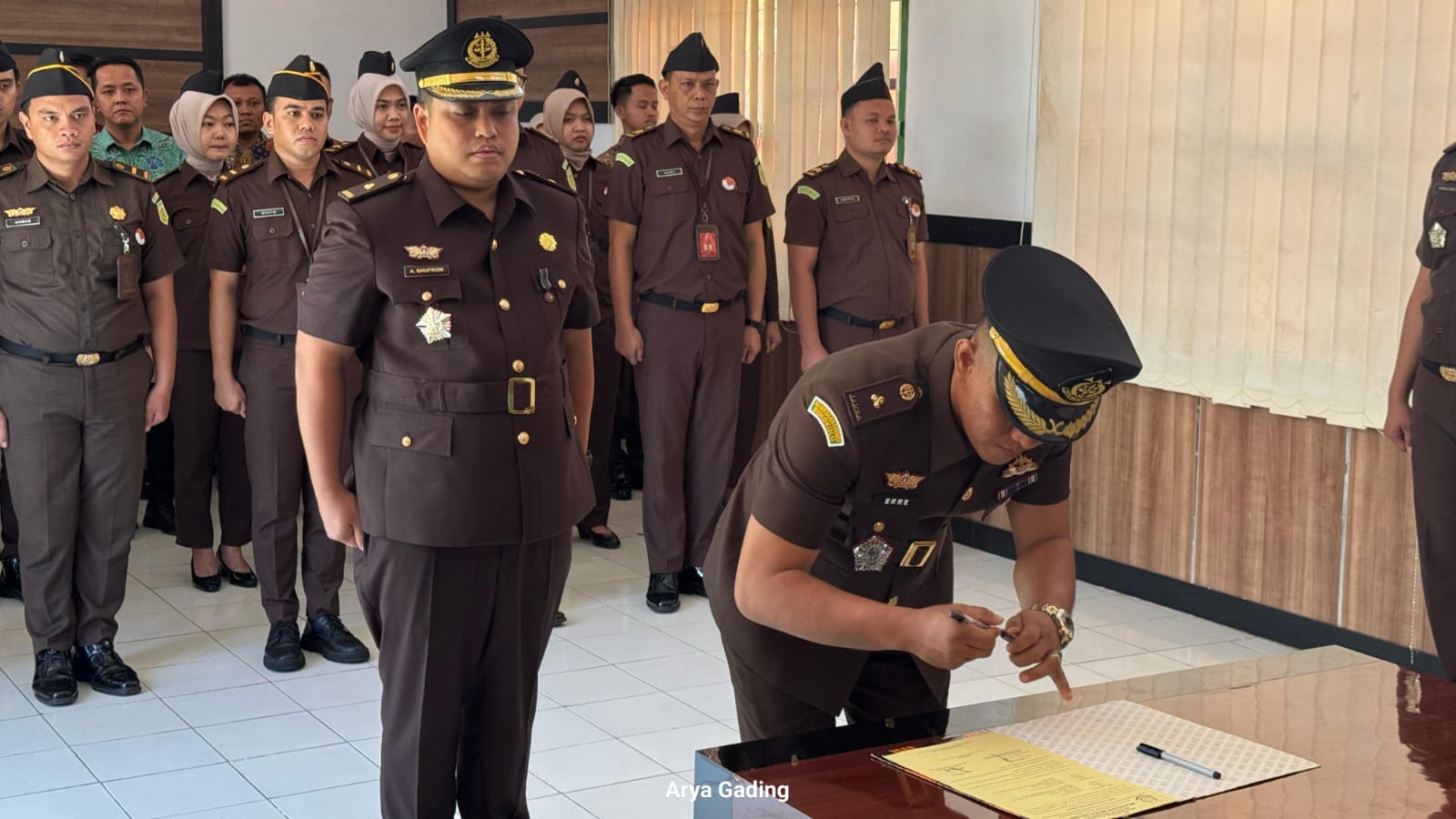 SELUMA, RBTV.DISWAY.ID - Serah terima jabatan Kepala Seksi Pidana Khusus (Kasi Pidsus) Kejari Seluma, antara pejabat lama dengan yang baru digelar di aula Kejari Seluma pada Jumat siang (25/04/2025).