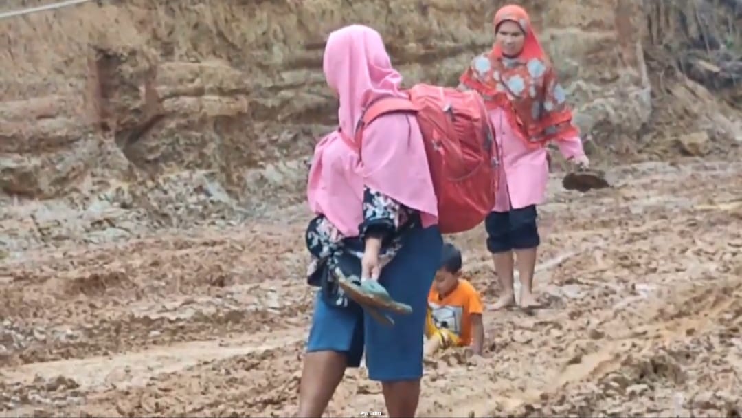 "Para guru dan murid yang tinggal di peraduan dingin selama ini naik motor, tapi karena susah dilewati, ya terpaksa para guru dan anak-anak sekolah harus berjalan kaki sejauh 2,5 km agar sampai ke sekolah," tambahnya.