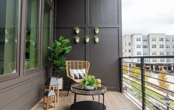 Hanya bermodalkan teralis, pot bunga, satu buah kursi, dan flooring yang minimalis banget!
