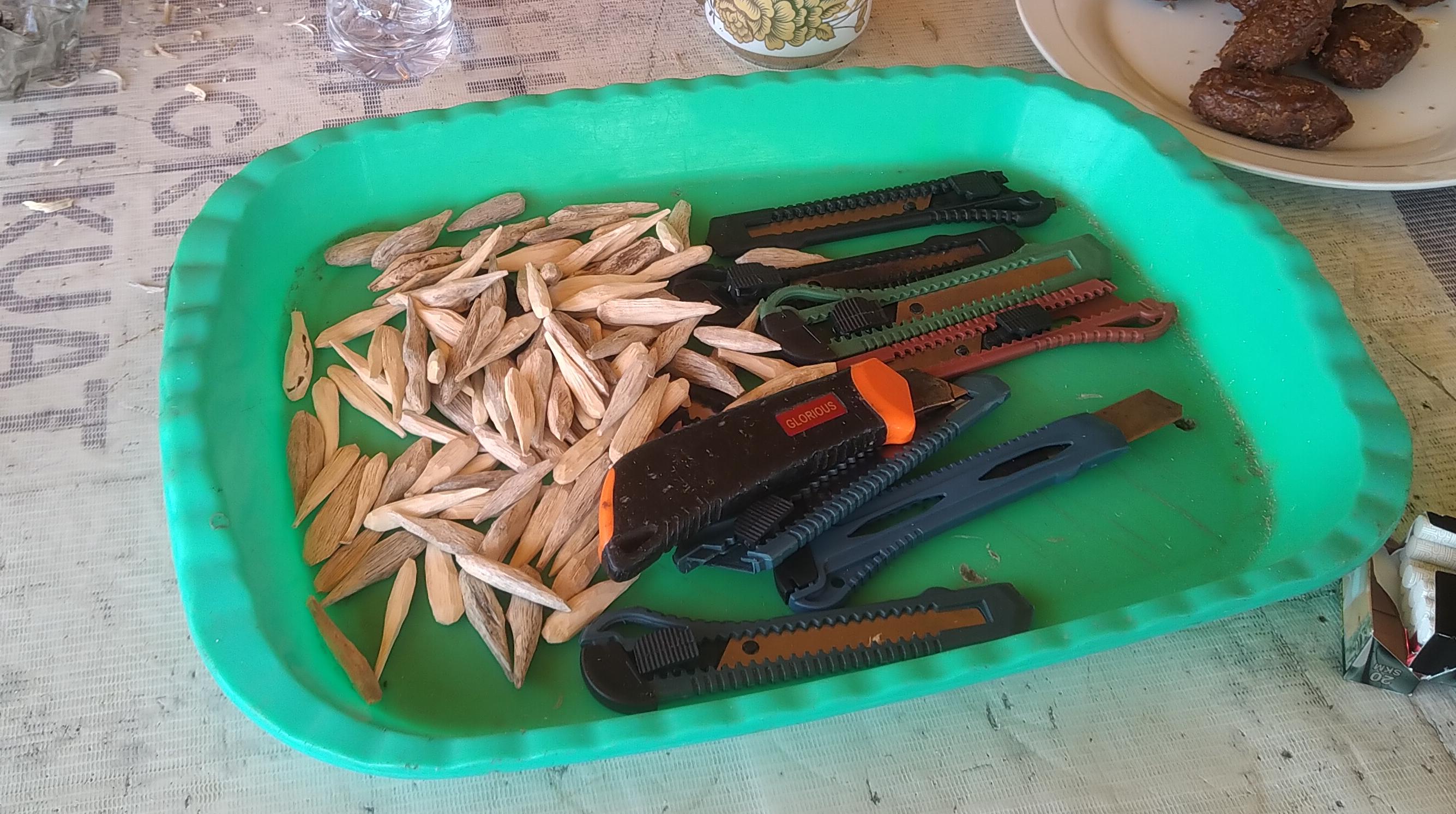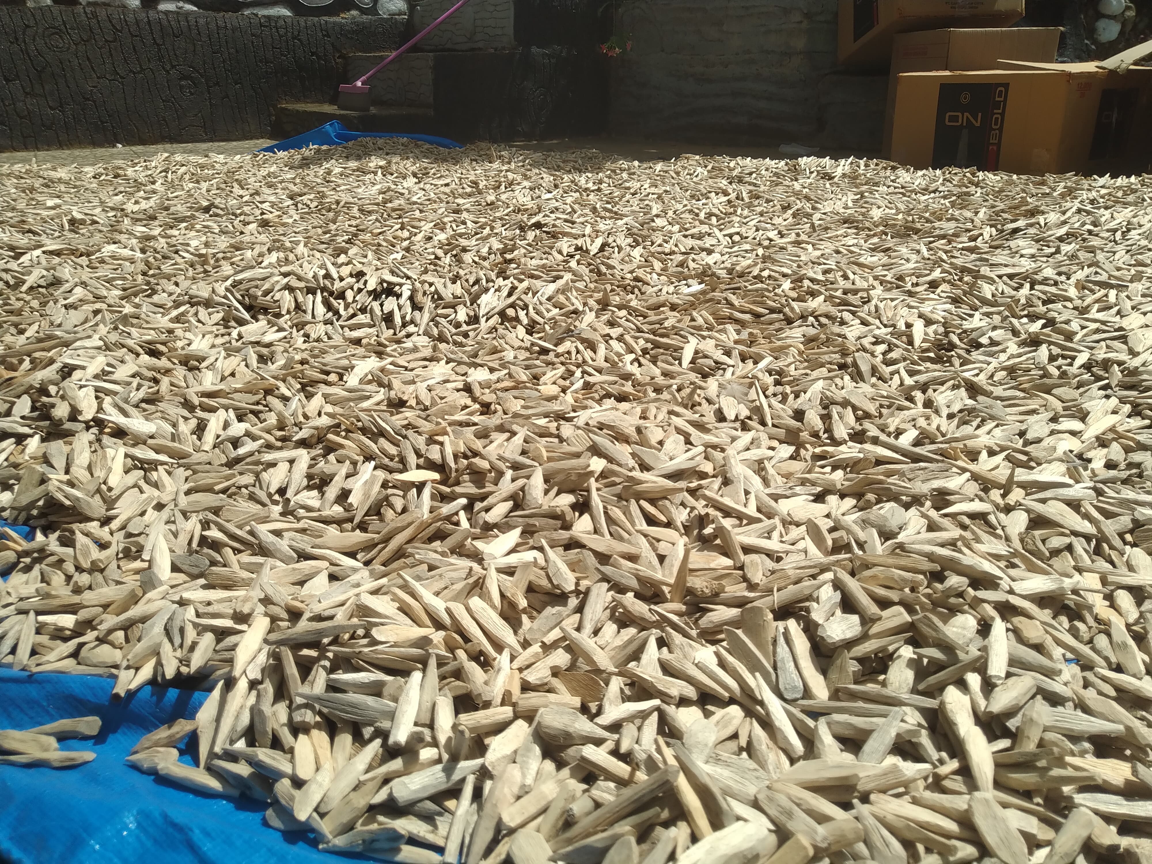 Setelah proses pengukiran selesai, kayu gaharu yang telah menjadi kepingan tersebut akan melalui proses penjemuran terlebih dahulu.